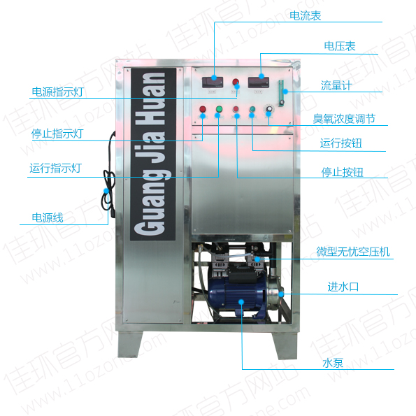 臭氧水量3-8T 型號:YT-016-S-30A 30克臭氧發生器水機 專利產品,此產品為廣州佳環電器科技有限公司獨家生產,請認準 品牌(廣加環) 水機產品組成: 30G電源模塊 (1組) 30G脫羥石英管臭氧發生管 (1根) 空氣分離器分子篩(制氧單元) (1臺) 6L 微型內置式無油空壓機 (1組) 濾水系統 (1組) 內置 高密度冷凝器 (1組) 內置 電流表 (1個) 數顯 電壓表 (1個) 數顯 濃度調節 (1個) 電源指示燈 (1個) 停止指示燈 (1個) 運行指示燈 (1個) 停止按鈕 (1個) 運行按鈕 (1個) 風扇 (2個) 臭氧水輸出口 (1個) 1寸 冷卻水進口 (1個) 4分 冷卻水出口 (1個) 4分 流量計 (1個) 15L 電源保險 (1個) 水泵 (1個) 射流器 (1個) 1寸 防回水電磁閥 (1個) 消音器 (1個) 內置 產品特點: 1、 水冷風冷雙冷設計 水冷冷卻臭氧發生管 風冷冷卻機器內溫度冷卻水0.2-0.3T/H 2、 外殼為不銹鋼 3、 利用氧氣為氣源,經過干燥過濾器,臭氧濃度提高 4、 臭氧量可調節 5、 氧氣純度:≥93% 6、 臭氧水濃度 1-2.5PPM (一般達到0.3-0.4ppm就達到消毒殺菌效果) 設備其他參數 整臺機尺寸:830*550*1420mm臭氧產量:30G/H 制氧機:6L/min 輸入電壓:220V(50HZ) 重 量:≤85KG 規 格:箱式 混合方式:DN25(1寸) 射流器 PVDF材質 增壓水泵:1.1KW 為了使用方便使用 220V/50HZ電源 馬力1.5HP 水流量 5T/H 揚程30米 接入冷卻水口 4分水管 臭氧水輸出口 DN25 1寸 整臺臭氧水機 功 率:約 2650W 售后服務:設備保修壹年,終身維護,設備如出現故障,購方需要說明設備情況,廠方當日回應 關于物流